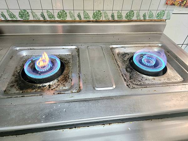 瓦斯爐一邊藍火一邊紅火,不曉得的人還以為是在為表演火舞秀做準備。