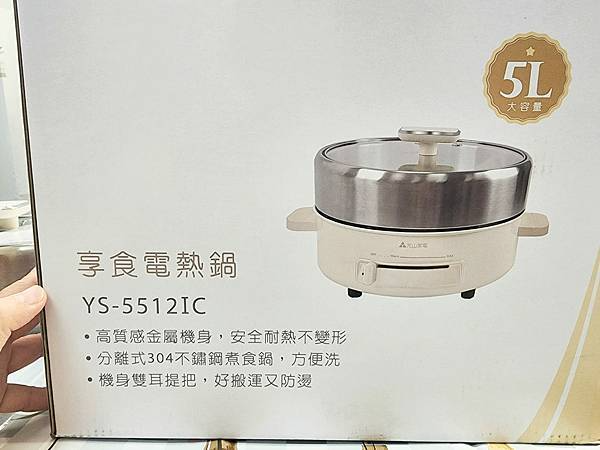 享食電熱鍋容量為5L,當初咕嚕媽就是看上他的大容量,加上SUS304不鏽鋼材質與能夠拆卸清洗的內鍋,畢竟過年將至除了需要烹煮比平常還要多的份量外,快速方便清潔更是忙碌的主婦們所需要的。