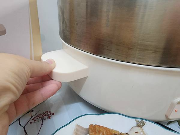 享食電熱鍋機身兩側雙耳有止滑紋路,所以當食用完料理後可以整個端起,清潔善後都沒問題。