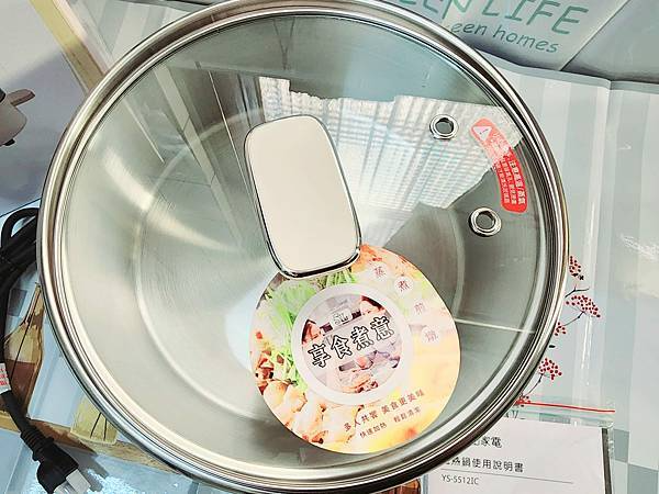 而享食電熱鍋取出後的配件有:機身、不鏽鋼鍋、可耐高溫的鋼化玻璃上蓋、保證說明書,我們慢慢一一來檢視。