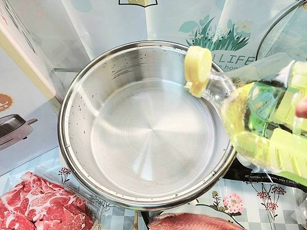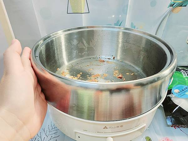 準備清潔不鏽鋼鍋,鍋子摸起來其實不燙手,享食電熱鍋的不鏽鋼鍋外圈,是中空設計完美避開了中間加熱的地方,所以料理完後只覺得溫熱不燙手。