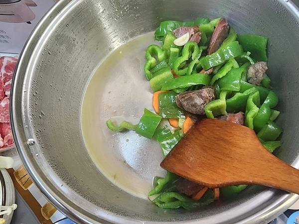 炒第一道菜時咕嚕媽就有發現到,以往用瓦斯+鐵鍋炒蔬菜時很容易焦黑,這次用【元山家電】電熱鍋來炒,鍋內設計是中高外低(倒油時就有發現)不僅炒蔬菜湯汁變多,食材也更容易熟與入味。