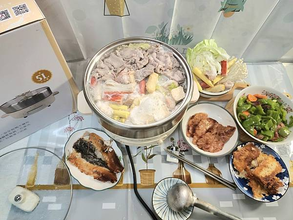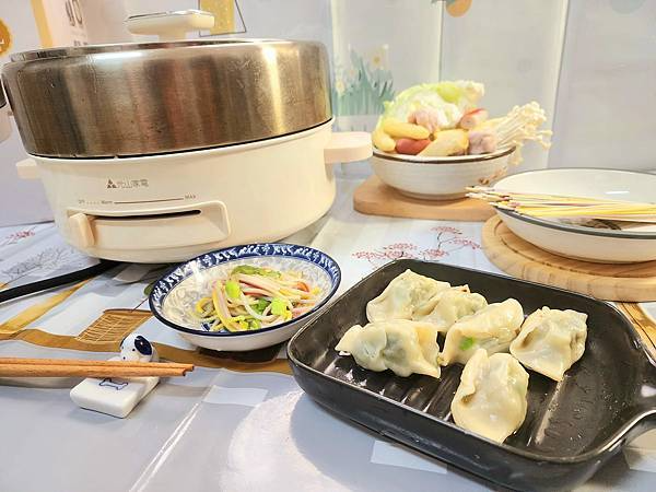 享食電熱鍋果然超級萬用,這樣隨便幾道料理其實就足夠小家庭來圍爐開伙,以往用瓦斯爐料理時常遇到煮到一半沒瓦斯的情形,有了5L大容量的享食電熱鍋過年烹煮也不怕來不及準備。