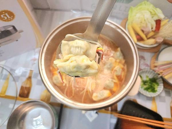 好啦,享食電熱鍋試煮完年菜很滿意,咕嚕媽要再來試煮個麻辣水餃湯麵看看,剛好利用剛才火鍋吃剩的湯頭。