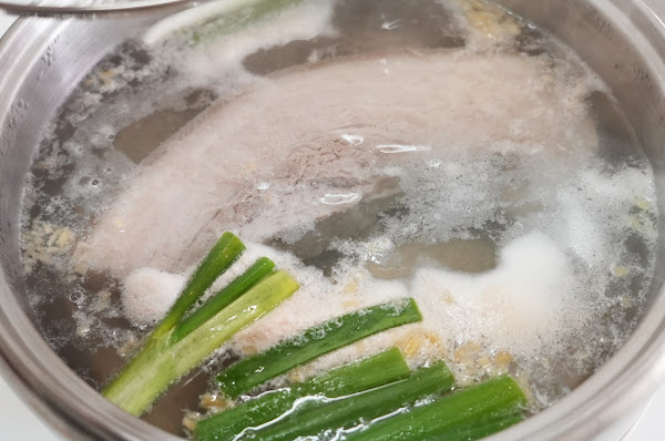 1.除了肉片以外,其他食材全下鍋,水加到鍋子85%煮沸