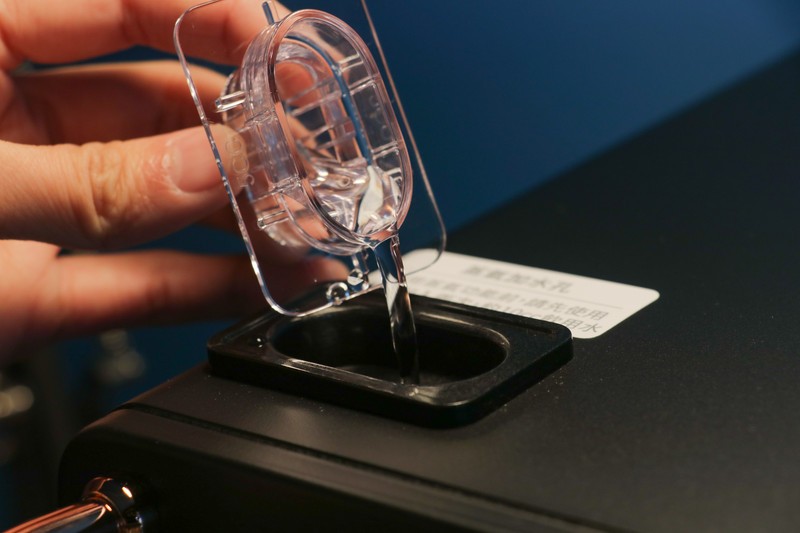 要使用蒸氣模式時,先打開上方的水箱蓋,蓋子裝滿一次是 5cc。實際使用時加入兩個蓋子的水量,大約是 10cc。