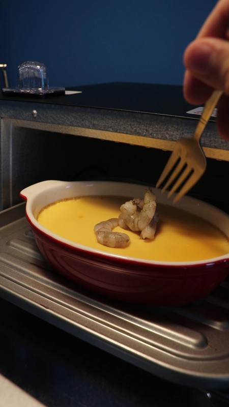 接著來試試烤箱蝦仁蒸蛋,第一次用烤箱蒸蛋,沒想到一次就成功!
