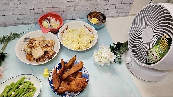 菜餚已經不燙了,還能將循環扇改成朝上90度仰角吹撫,讓客廳空氣流動,感受到室內漸漸變得涼爽不悶熱了。