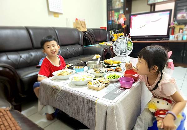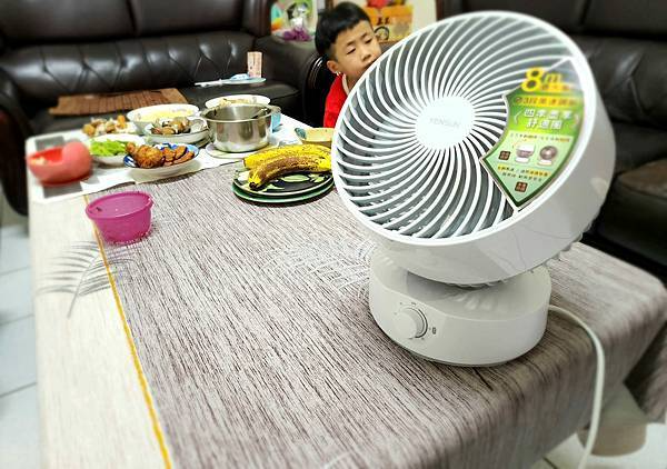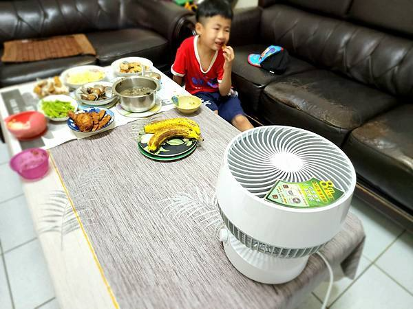 夏天用餐就是要感覺涼涼爽爽的才會有胃口,咕嚕媽還發現到,自從我們家用了循環扇YS-1801FN,小朋友吃飯變得很歡樂,看兒子飯吃到一半沒事還會跑到風扇前面喊一下「啊~~」,這...這應該是每個小孩都曾做過的無聊事(笑~),咕嚕媽我先自己舉手承認小時候真的有做過~哈哈。