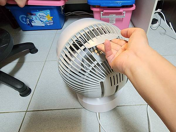 當然是拿到3樓房間去吹呀!這台循環風扇總重量才2.3公斤超級輕盈的,而且上面就有手提把設計,提著走上樓也不覺得會累。