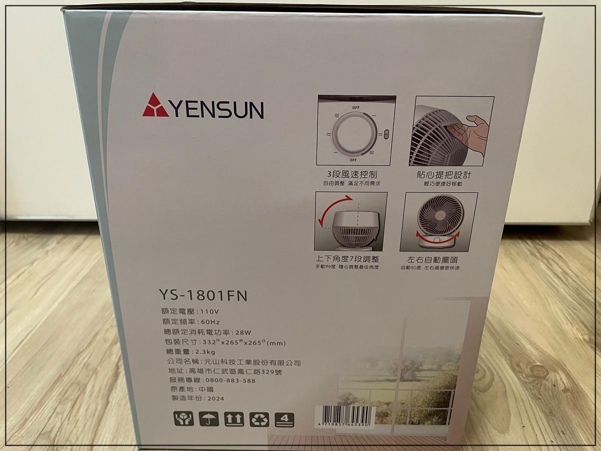 夏天快要到了,各種屬於夏天的電器也都開始要取出使用了。夏天最重要的電器首推冷氣,不過政府4/1才剛調漲了電費,在家中長時間開冷氣對荷包的殺傷力還是很強的。但夏天沒有冷氣又很難受,這時候空氣循環扇就體現出它的價值了。空氣循環扇是藉由扇葉角度及風罩的設計,使風力能集中為螺旋柱狀氣流,帶動遠端的空氣流通,有助於室內空氣的循環,而電風扇吹風的距離較短,是透過直吹人體的風來達到體感降溫的效果,因此兩者的作用不太一樣。元山家電循環扇YS-1801FN是國內知名家電品牌元山科技的產品,元山早期以做開飲機及電風扇起家,適當的產品設計、較輕的重量及具競爭力的價格都讓它具有不錯的市場競爭力。
