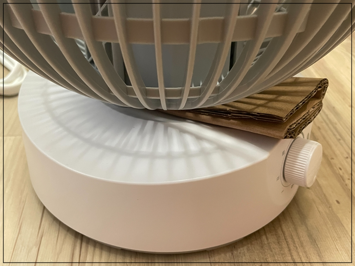 循環扇在開箱時下方有卡一塊瓦楞紙防止晃動。