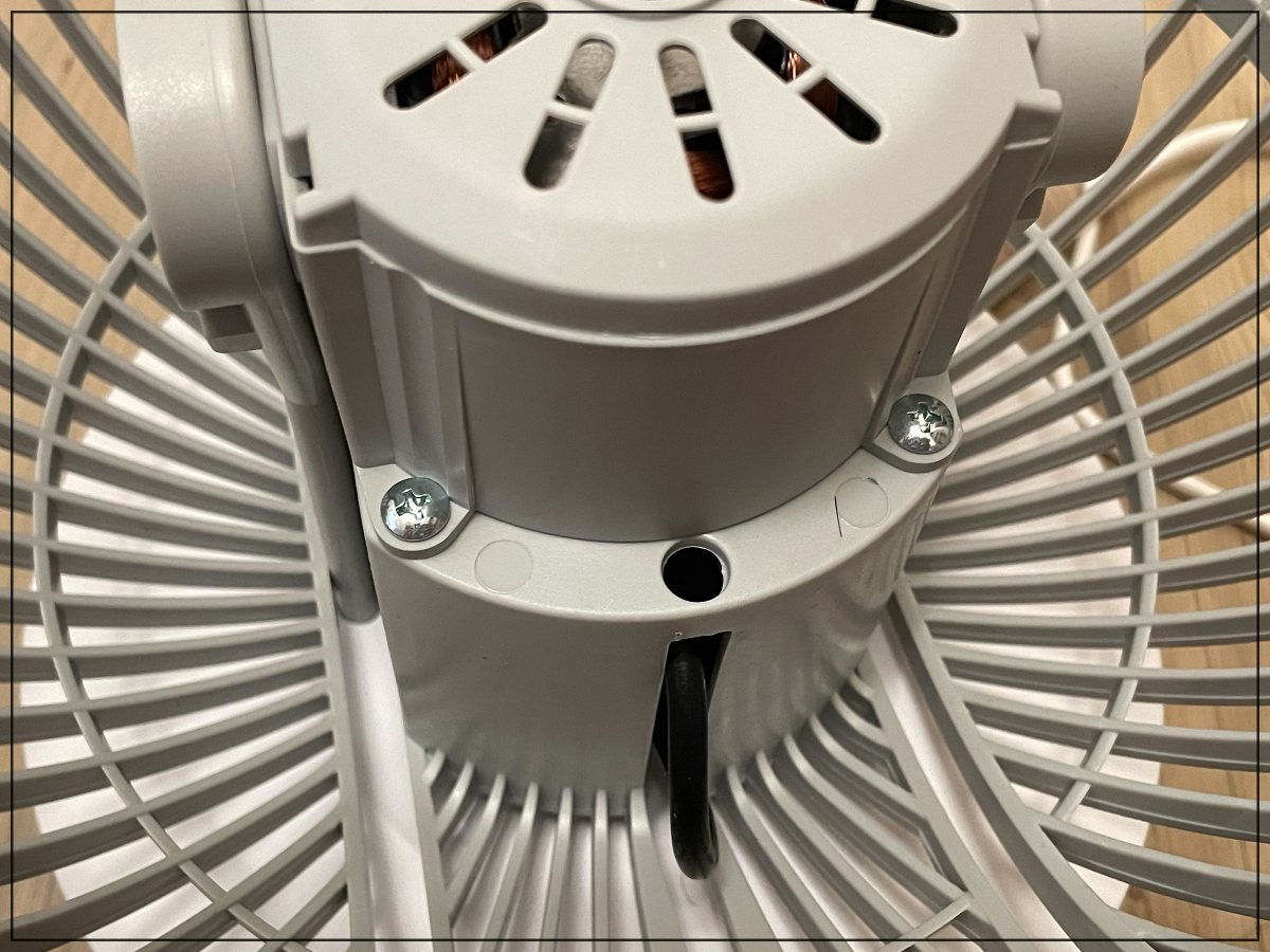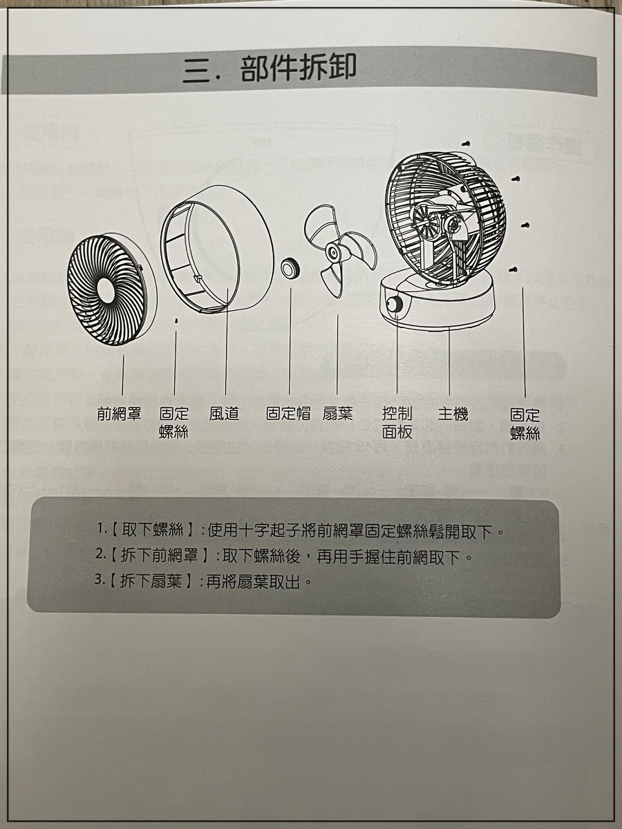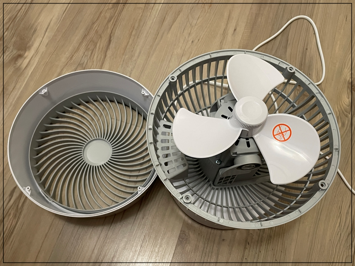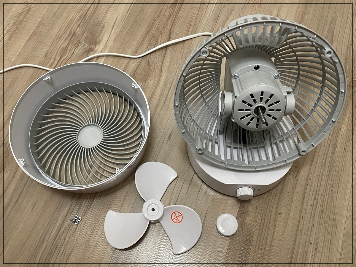 元山家電循環扇拆卸也不會很困難,風罩後方有四顆螺絲,直接用十字起子拆下來就好。