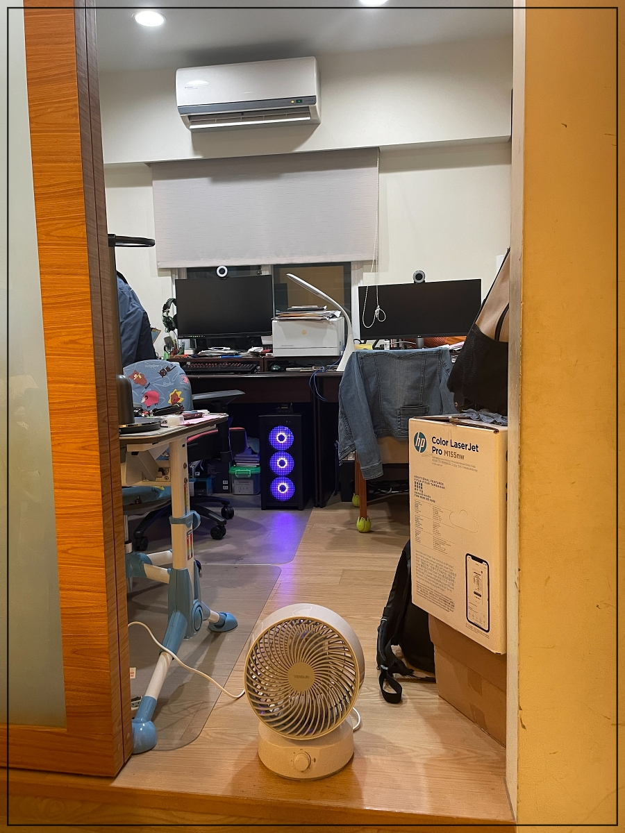 家裡飯廳並沒有安裝冷氣,因此吃飯時只能開啟書房的冷氣,讓冷氣透過循環後使飯廳也可以感受到冷氣,但由於書房跟飯廳之間還有個玻璃拉門阻隔,所以循環效果不佳,總是要等很久才稍微有涼快的感覺,就算使用電風扇效果也不是很好。現在有了元山家電循環扇之後,總算不用等半天才能感受到冷氣了。