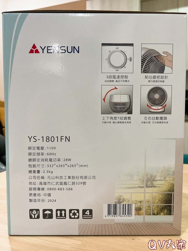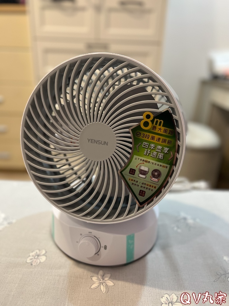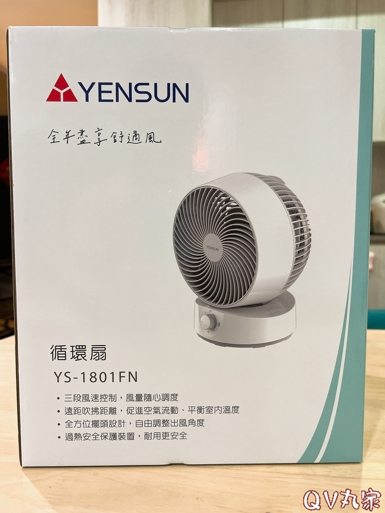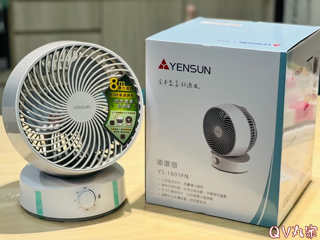夏天快到了,不能少了小型涼感風扇,這次丸家要開箱元山家電 循環扇YS-1801FN,這款空氣循環扇體積輕巧,有3檔風速的涼風可調整,遠距吹拂距離最大可至8M,增加空間中空氣的循環流動,7檔手動調整仰角,最大可調整至90度,搭配左右80度自動擺頭,吹風的範圍很廣,不論是放置在工作的電腦桌前,或是客廳桌上,發懶的沙發上、臥房,甚至是帶到戶外露營使用都很可以。