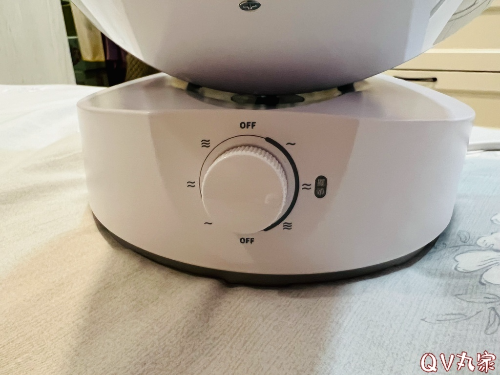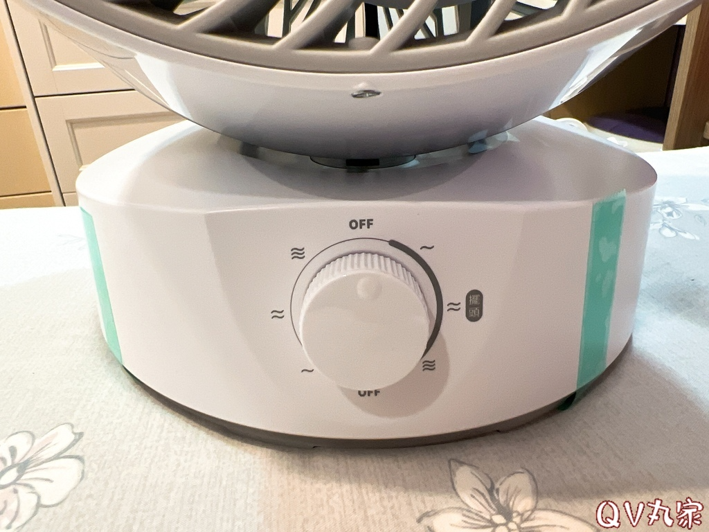 空氣循環扇的旋鈕,更是設計的相當直覺,婆婆媽媽都能簡易上手,往右旋轉循環扇會自動80度旋轉左右擺頭,並有1~3段風速選擇,往左則是循環扇固定不擺頭,也有1~3段風速選擇