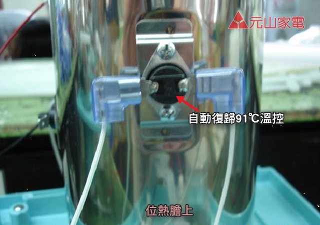 - 自動復歸91 ℃溫控:當熱膽內之水溫達到95℃以上,91℃溫控自動跳脫至保溫狀態中。