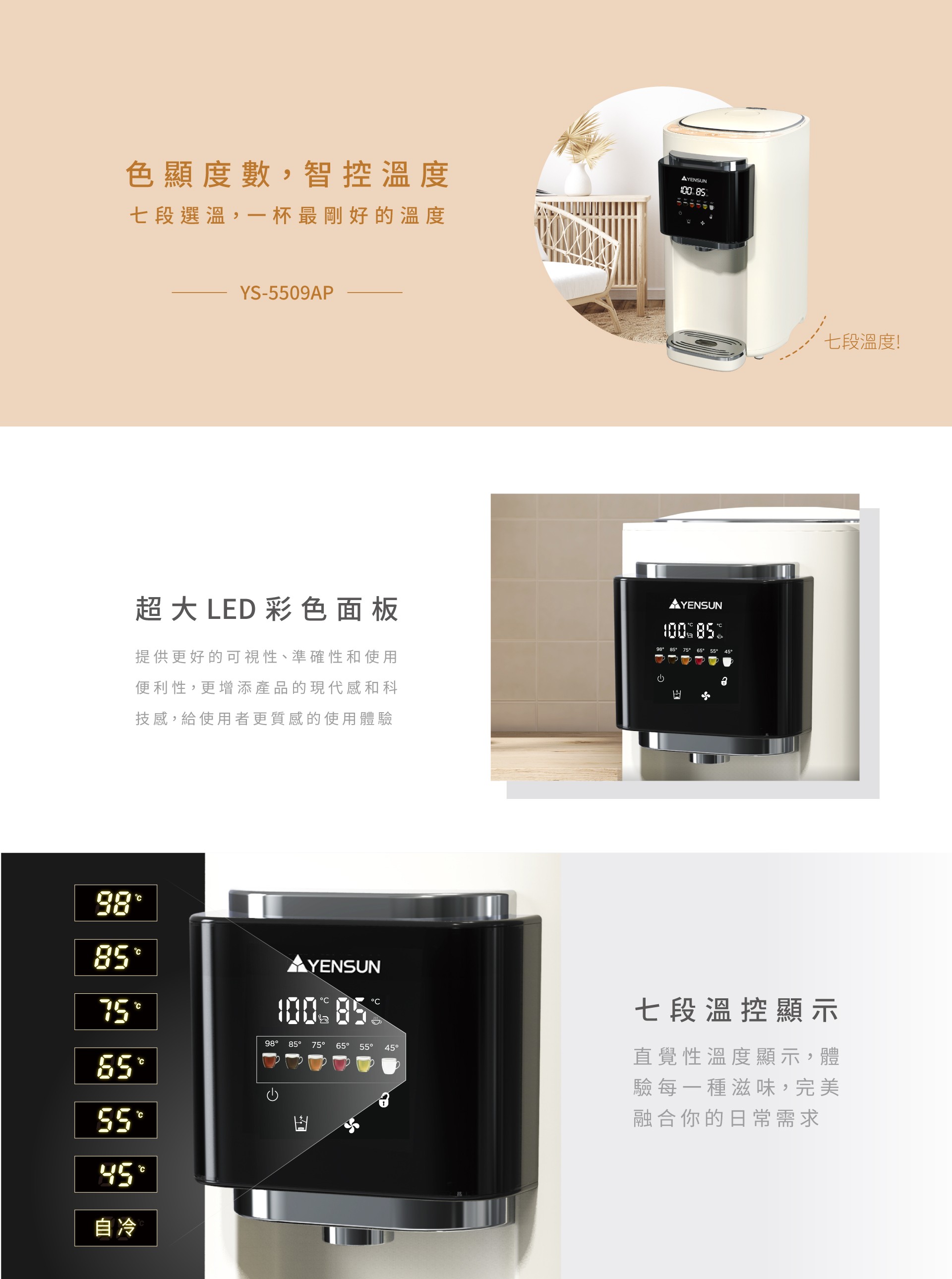 2.直覺性七段溫控顯示,完美融合你的日常需求
