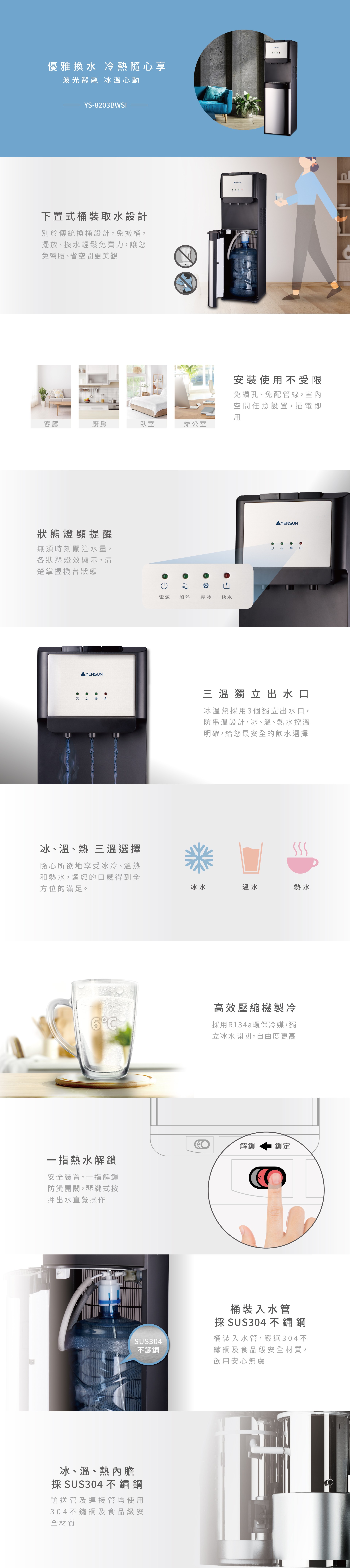 5.三個獨立出水口,同時享用冰溫熱三段溫度 快速出水一機完成
